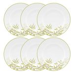 Se nos menores frascos se escondem as melhores fragrâncias, é justo afirmar que nas árvores pequenas estão alguns dos melhores frutos. A oliveira é a árvore que produz as azeitonas, que são processadas e transformadas em azeite. Muitas histórias consagram a oliveira como uma árvore icônica. Seja na mitologia grega ou em histórias bíblicas, a árvore possui uma rica história e serviu de inspiração para uma decoração que leva o seu nome. Ramos de folhas de oliveira e azeitonas pintadas em aquarela decoram a aba de cada prato do modelo Flamingo.