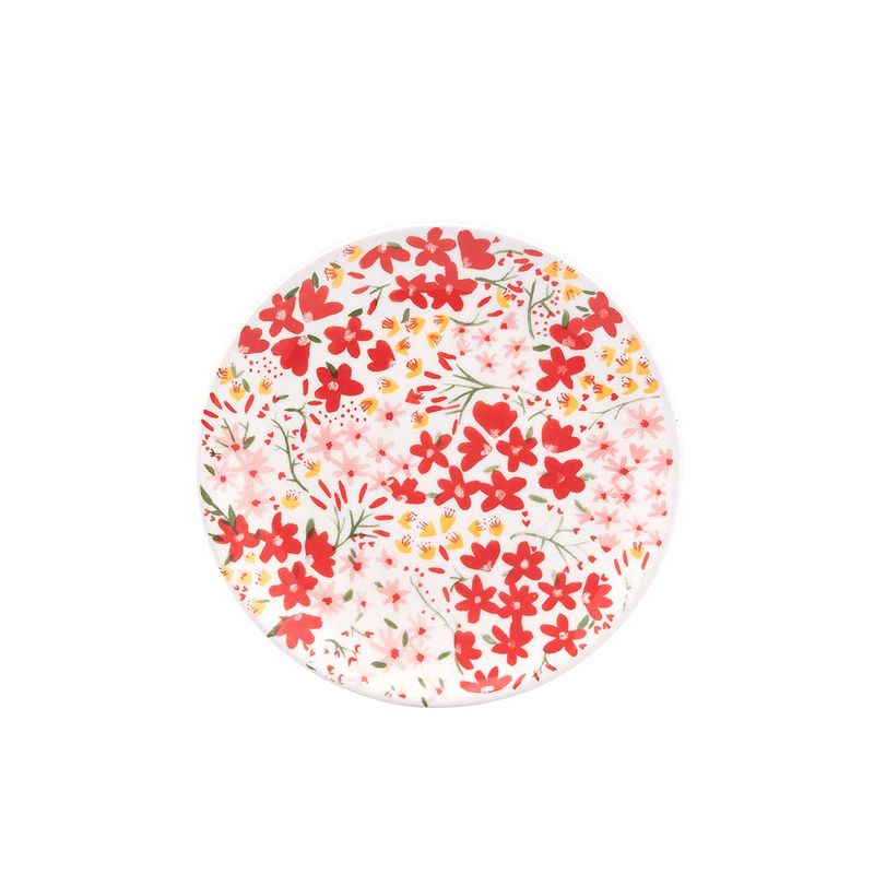 Estampas e patterns vibrantes estão com tudo! Ainda mais em uma proposta feita em guache desenvolvida especialmente no modelo Coup. A decoração Floral traz o jardim à mesa com mini flores estampadas em vermelho e laranja. Muita alegria e detalhes encantadores em cada peça! O modelo Coup da Oxford é um clássico e recebe como inspiração o nome padrão atribuído às suas formas redondas. O conjunto é comporto por 6 pratos de sobremesa.